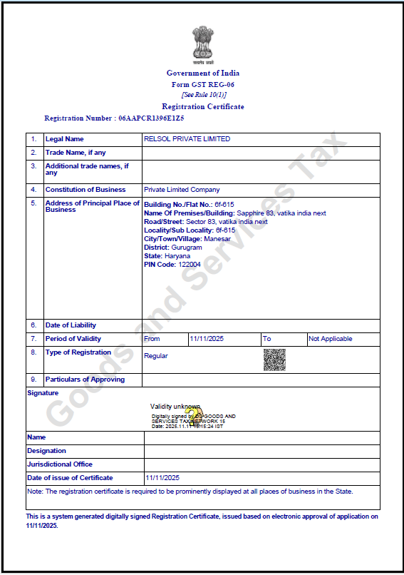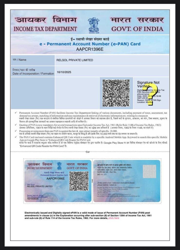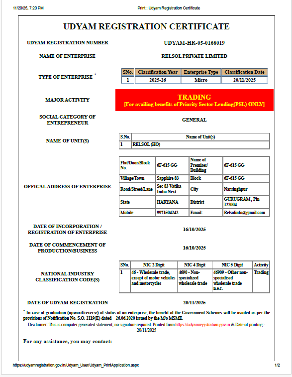 Certificates : GST , PAN Card , MSME